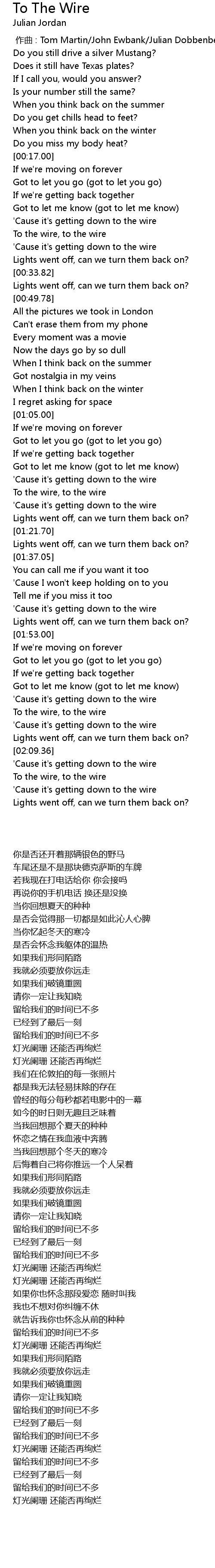| 歌曲 | To The Wire |