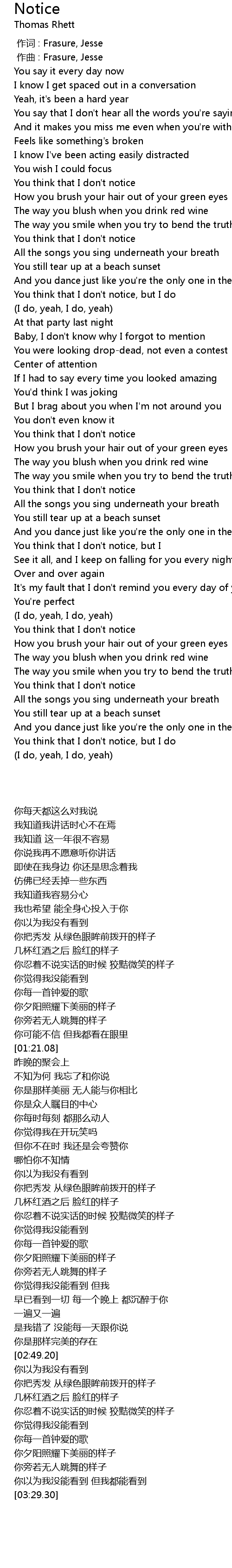 | 歌曲 | Notice |