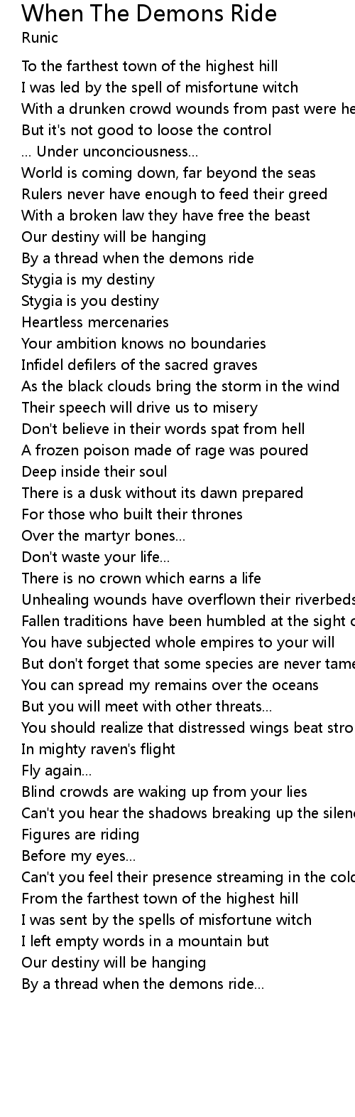 By a thread when the demons ride... |