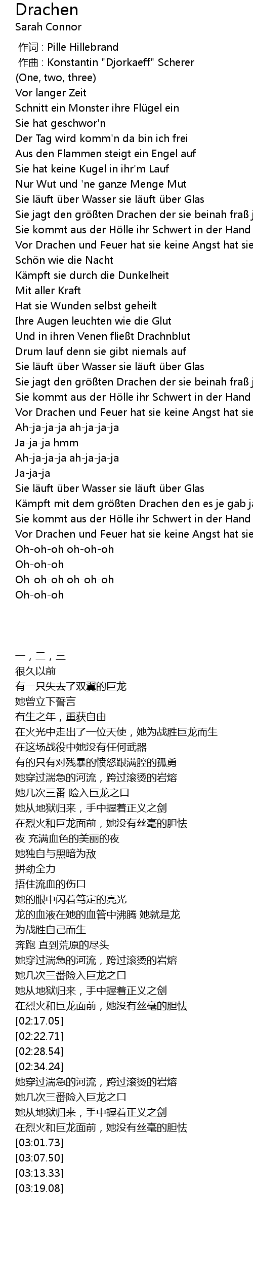 | [01:56.38] | Sie jagt den größten Drachen der sie beinah fraß ja |