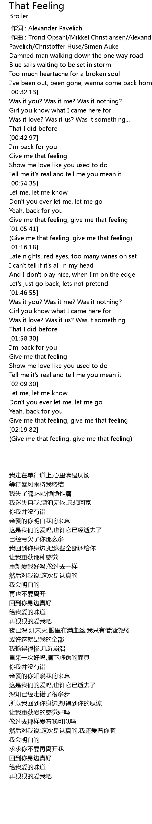| [02:17.38] | Give me that feeling, give me that feeling |