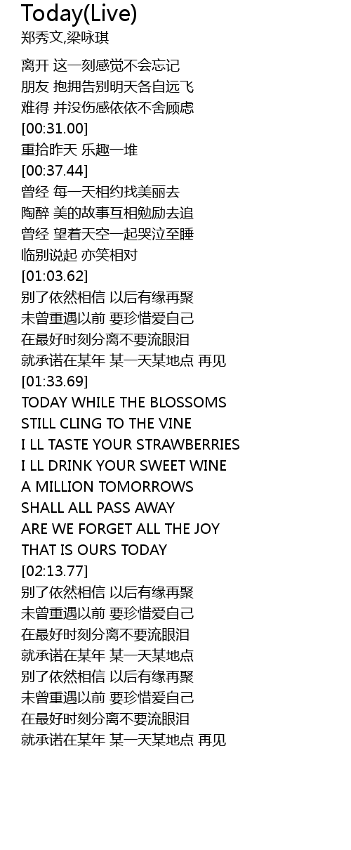 | [01:46.58] | TODAY WHILE THE BLOSSOMS |