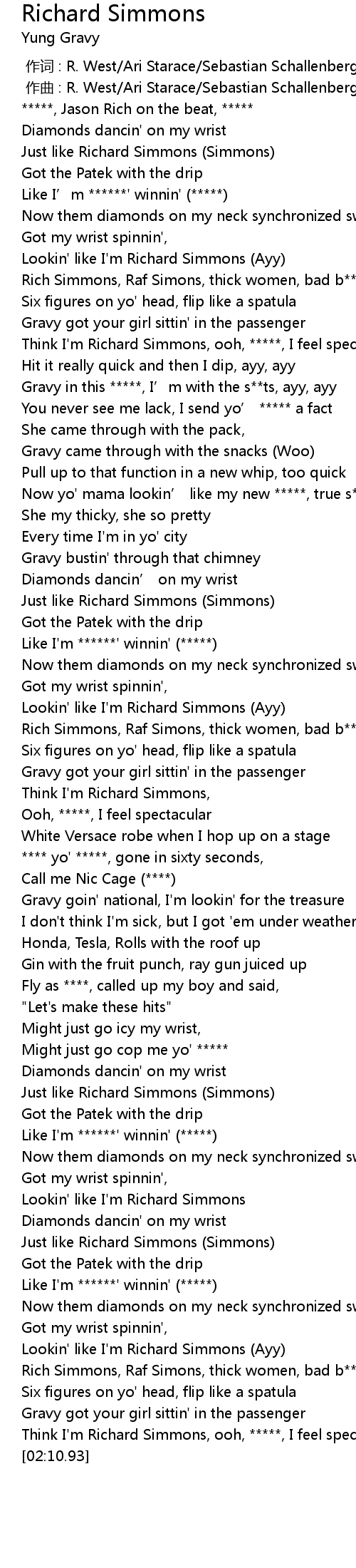 | [00:52.93] | Just like Richard Simmons (Simmons) |