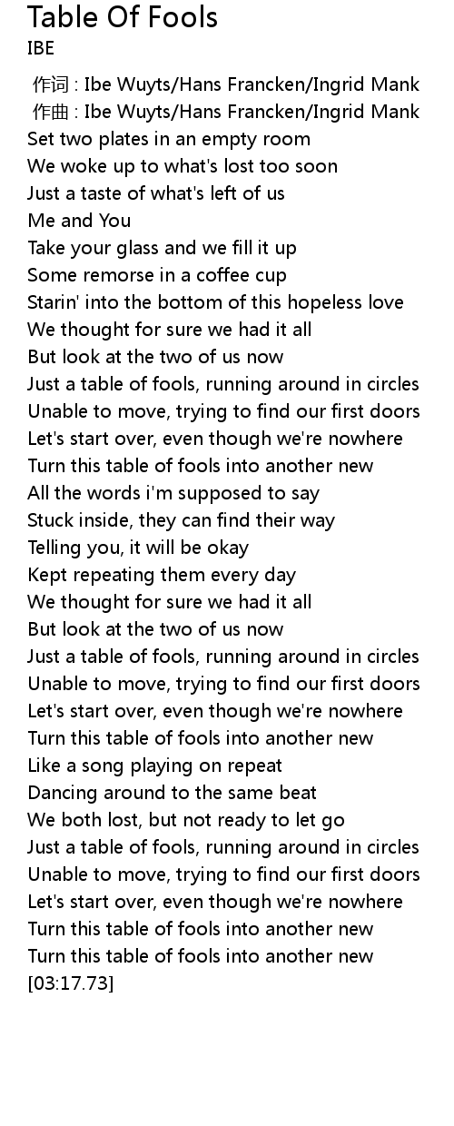 | [00:00.000] | 作词 : Ibe Wuyts/Hans Francken/Ingrid Mank |