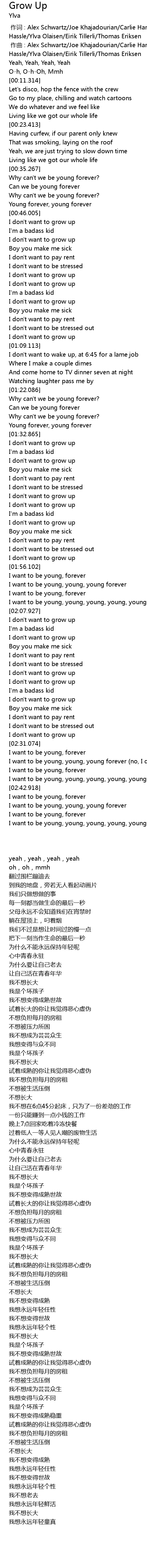 | [02:34.597] | I want to be young, young, young forever (no, I don't ever) |