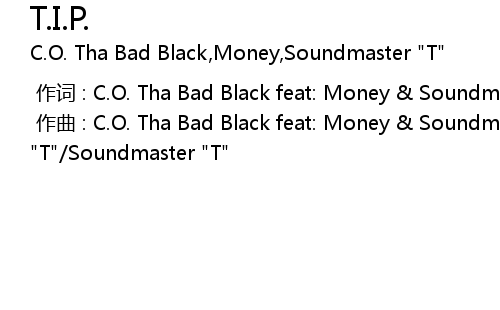 | [00:00.000] | 作曲 : C.O. Tha Bad Black feat: Money & Soundmaster "T"/Soundmaster "T" |