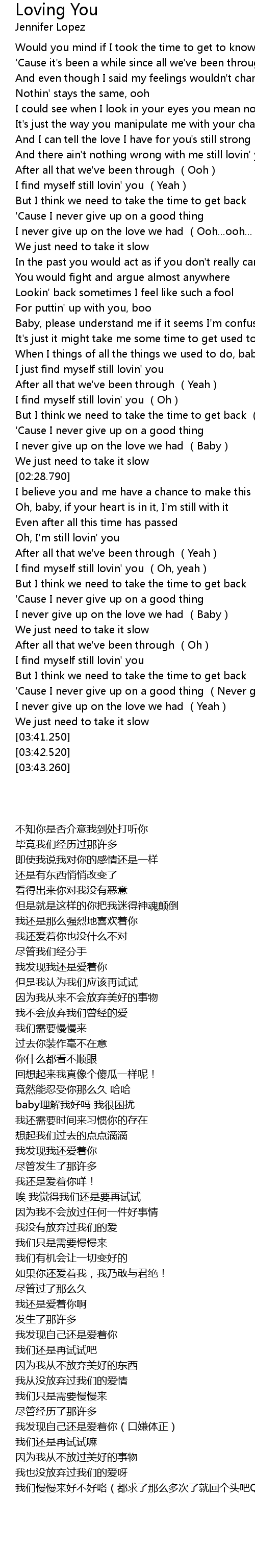 | [03:00.170] | Oh, I' m still lovin' you |