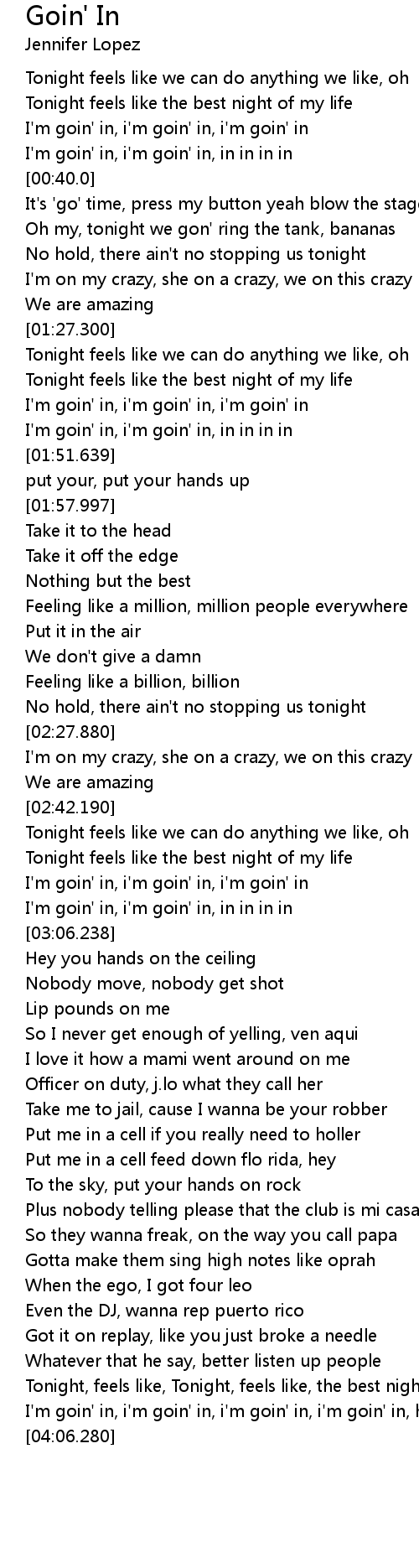 | [03:00.929] | I' m goin' in, i' m goin' in, in in in in |