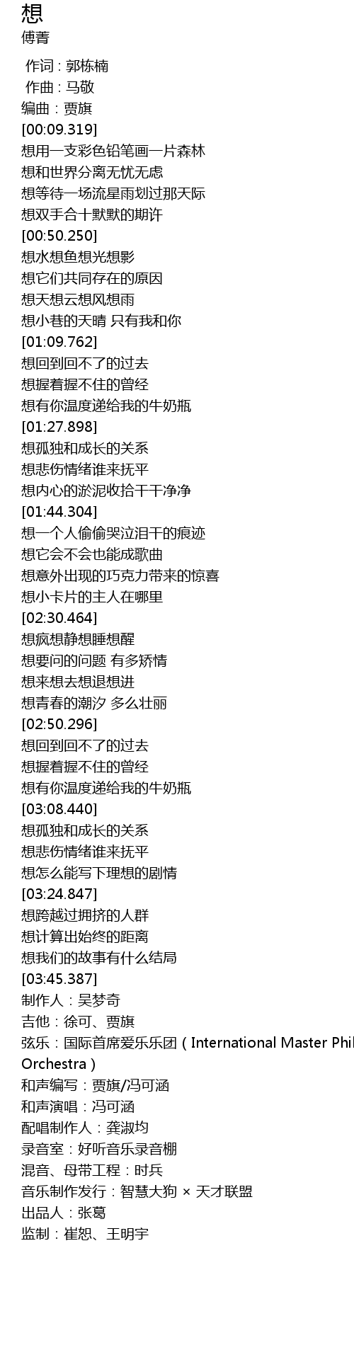| [03:48.969] | 和声编写:贾旗/冯可涵 |