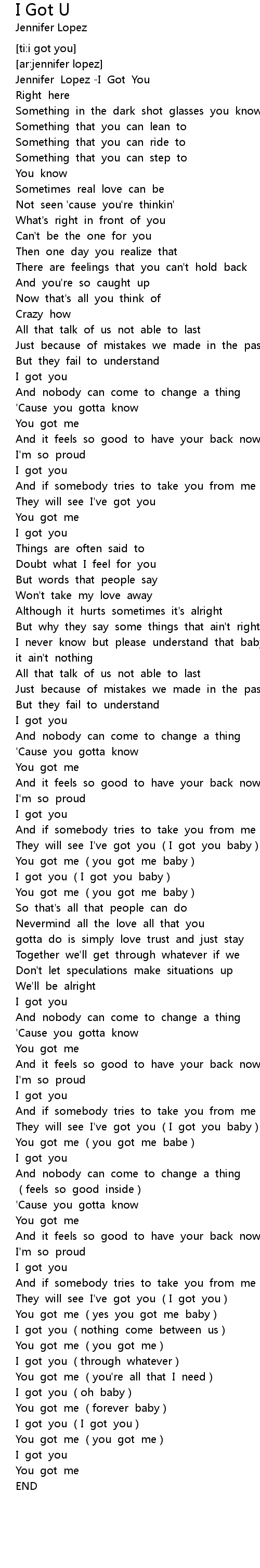 | [00:01.62] | Jennifer Lopez -I Got You |