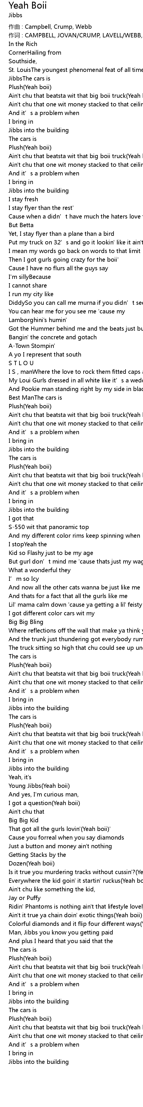 | 歌曲 | Yeah Boii |