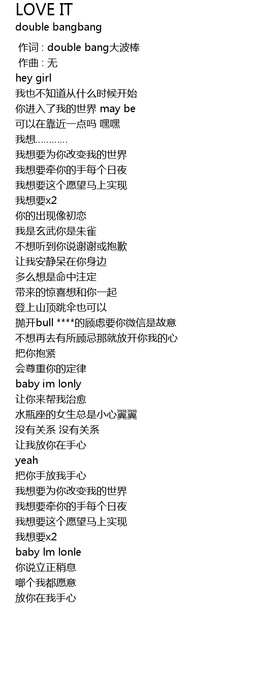 | [00:00.000] | 作词 : double bang大波棒 |
