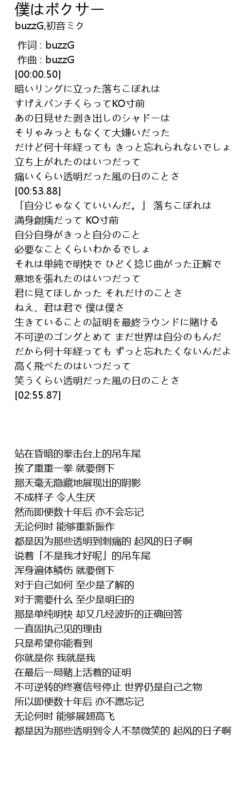 | [01:57.39] | 生きていることの証明を最終ラウンドに賭ける |