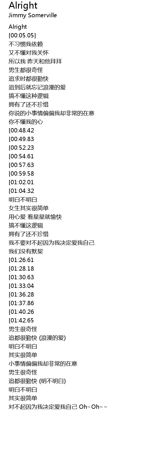 | [02:25.92][00:49.83] | 不适合我就离开 |