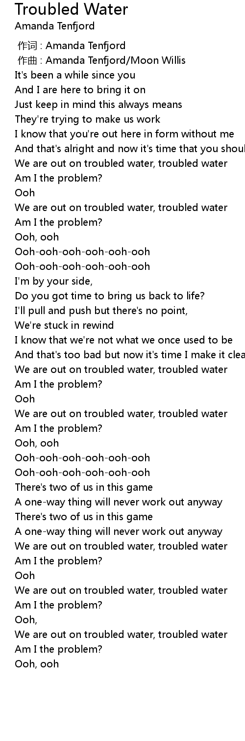 | [00:28.52] | We are out on troubled water, troubled water |