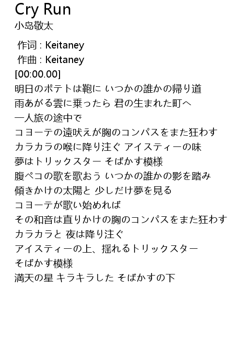 | [01:52.05] | 腹ペコの歌を歌おう いつかの誰かの影を踏み |