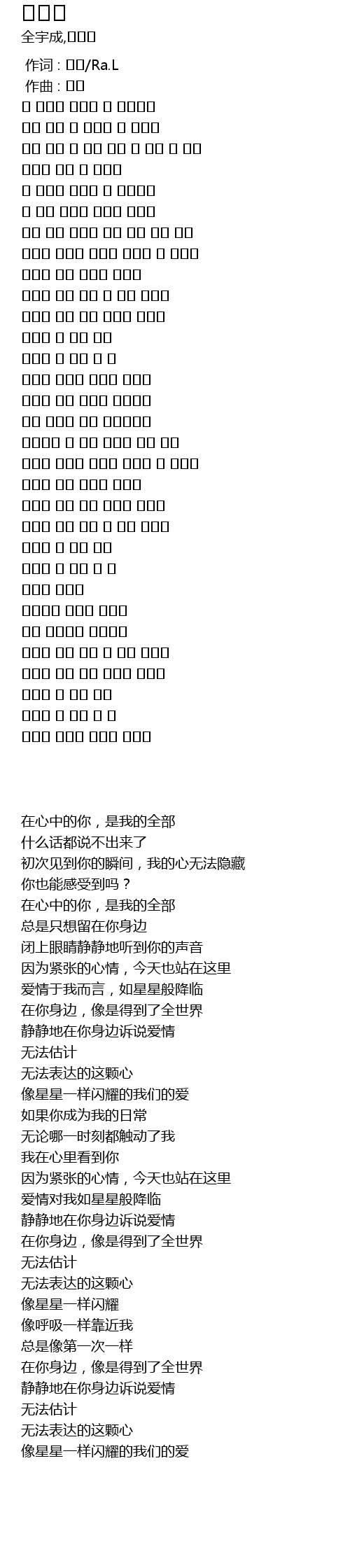 | [00:14.384] | 在心中的你,是我的全部 |