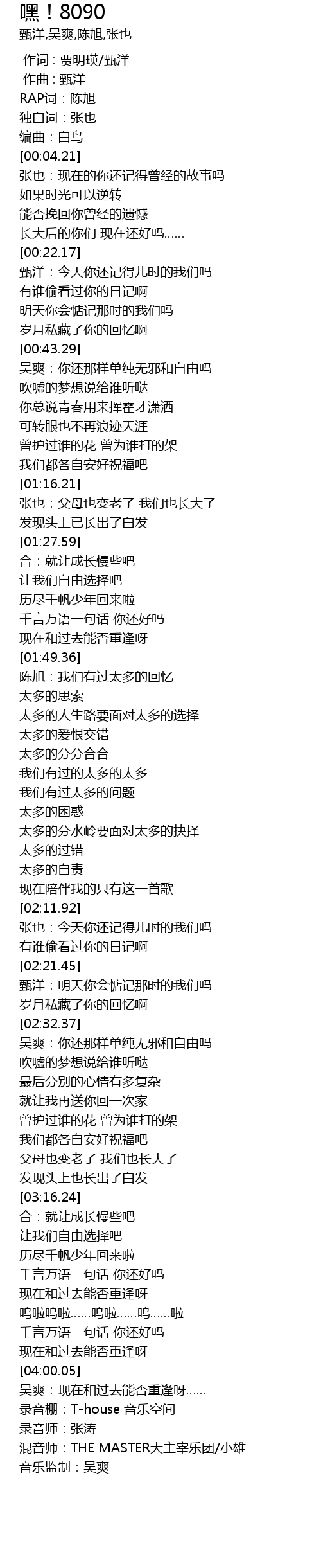 | [04:21.51] | 录音棚:T-house 音乐空间 |