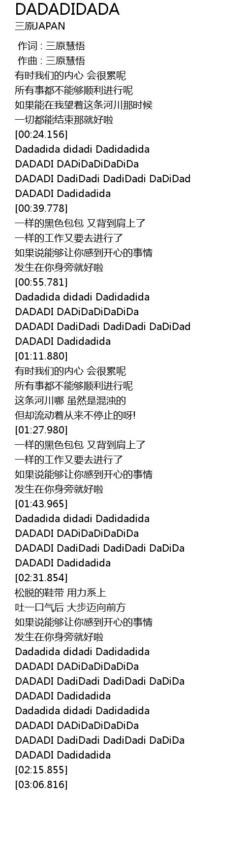| [03:00.384] | DADADI Dadidadida |