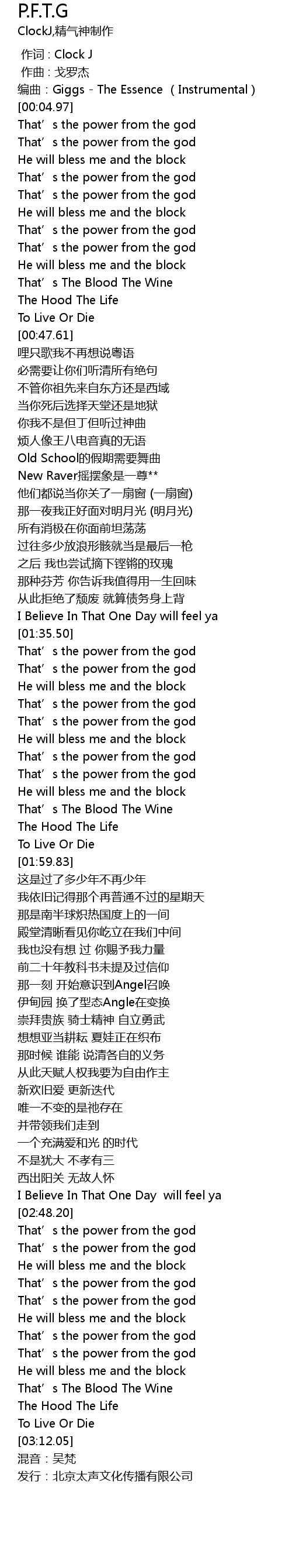 | [01:38.60] | That’s the power from the god |