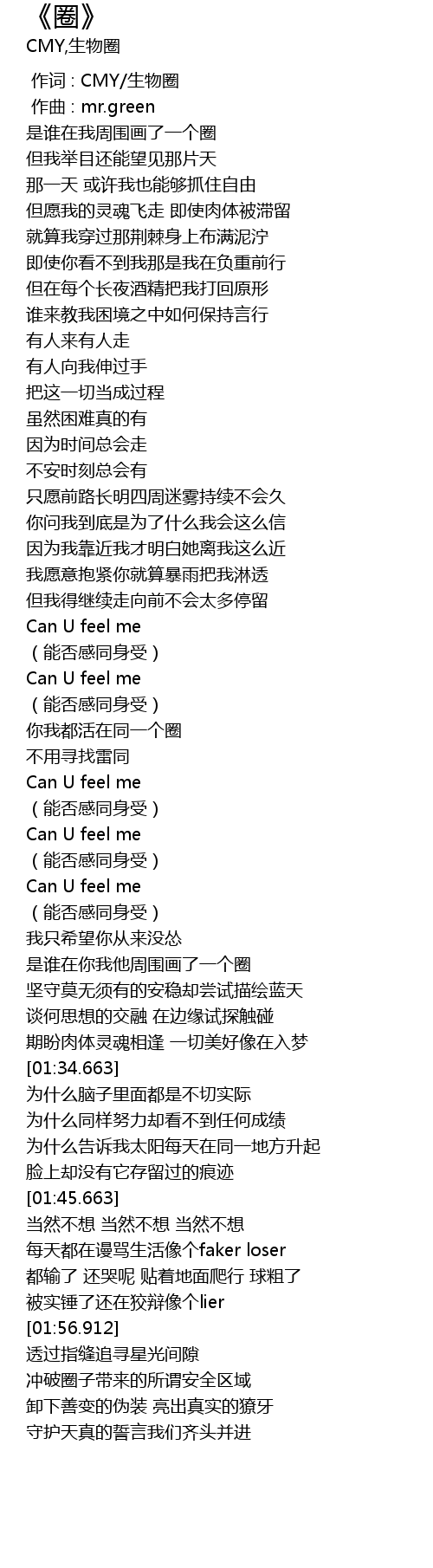 | [00:00.000] | 作词 : CMY/生物圈 |
