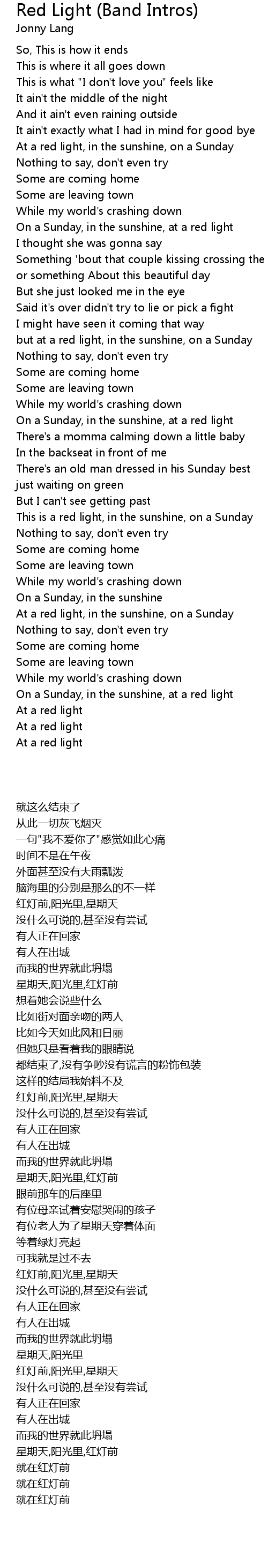 On a Sunday, in the sunshine, at a red light |