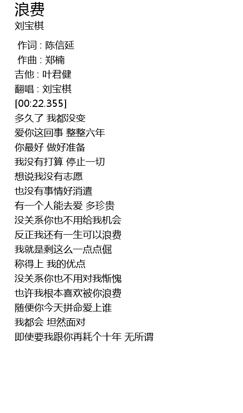 | [00:06.418] | 翻唱 : 刘宝棋 |
