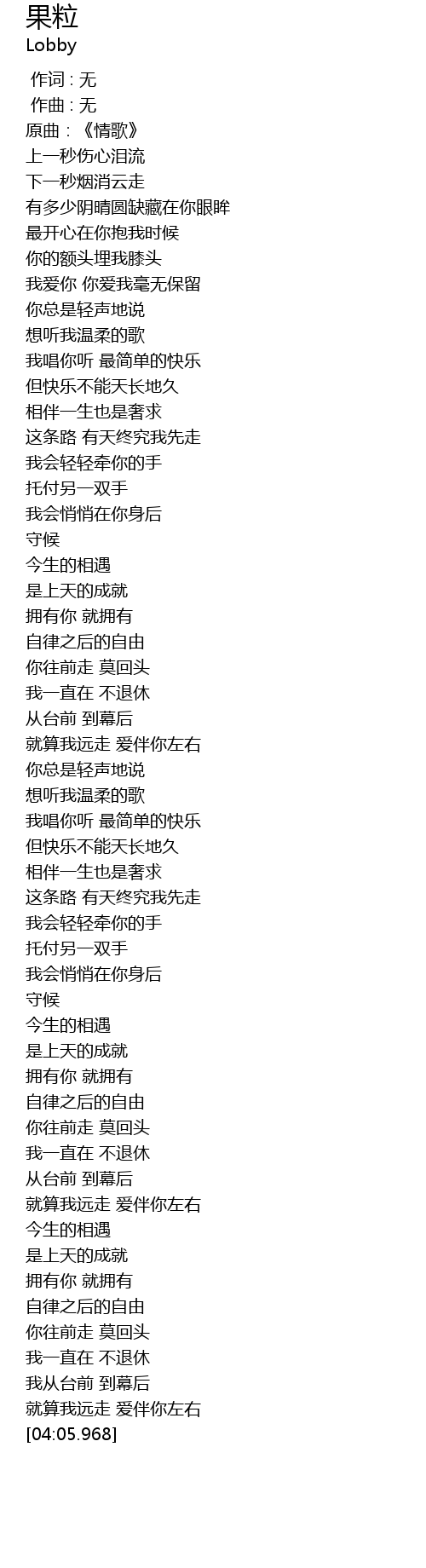 | [00:36.918] | 我爱你 你爱我毫无保留 |
