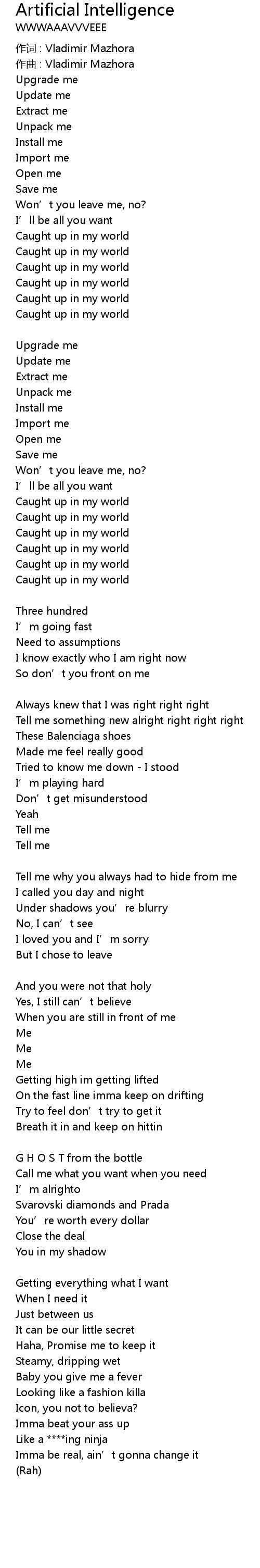 | 歌曲 | Artificial Intelligence |