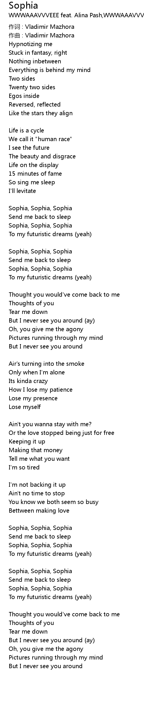 | 歌曲 | Sophia |