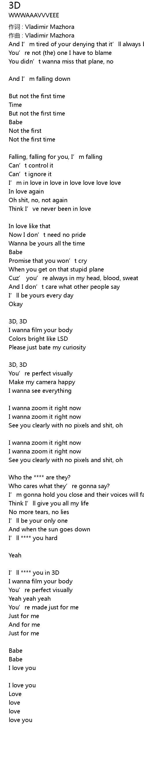 | 歌曲 | 3D |