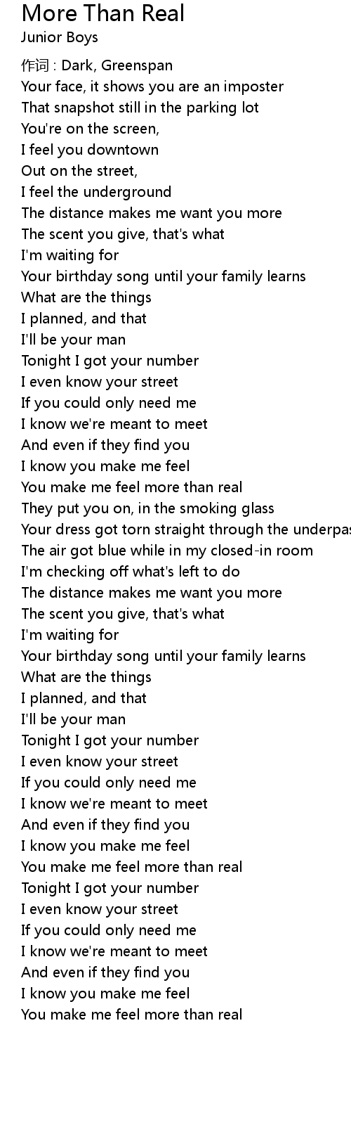 | 歌曲 | More Than Real |