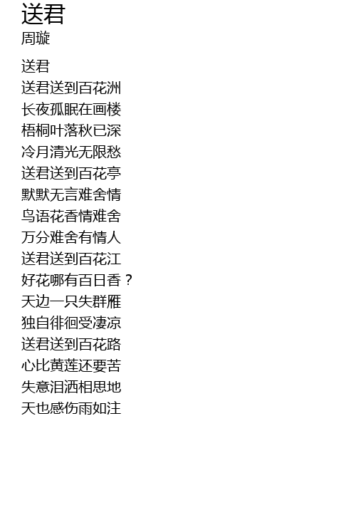 | [00:11.91] | sòng jūn sòng dào bǎi huā zhōu |