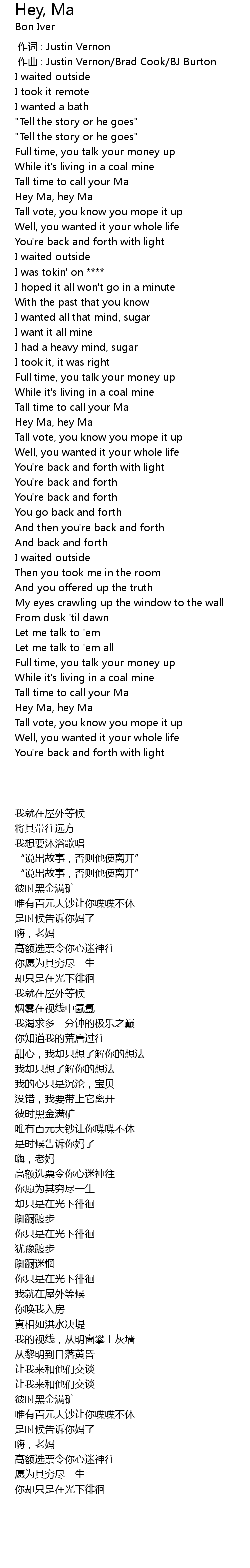 | [00:01.000] | zuo qu : Justin Vernon Brad Cook BJ Burton |