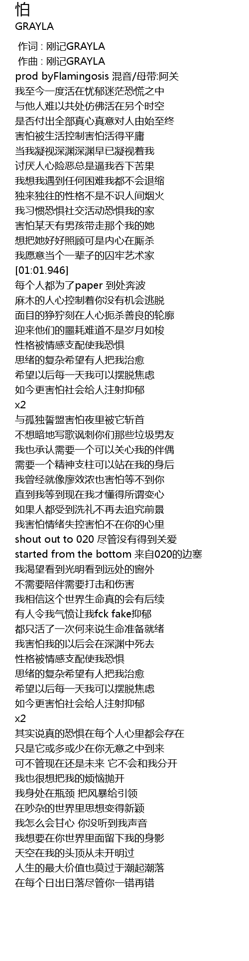 | [00:40.193] | hài pà bèi shēng huó kòng zhì hài pà huó dé píng yōng |
