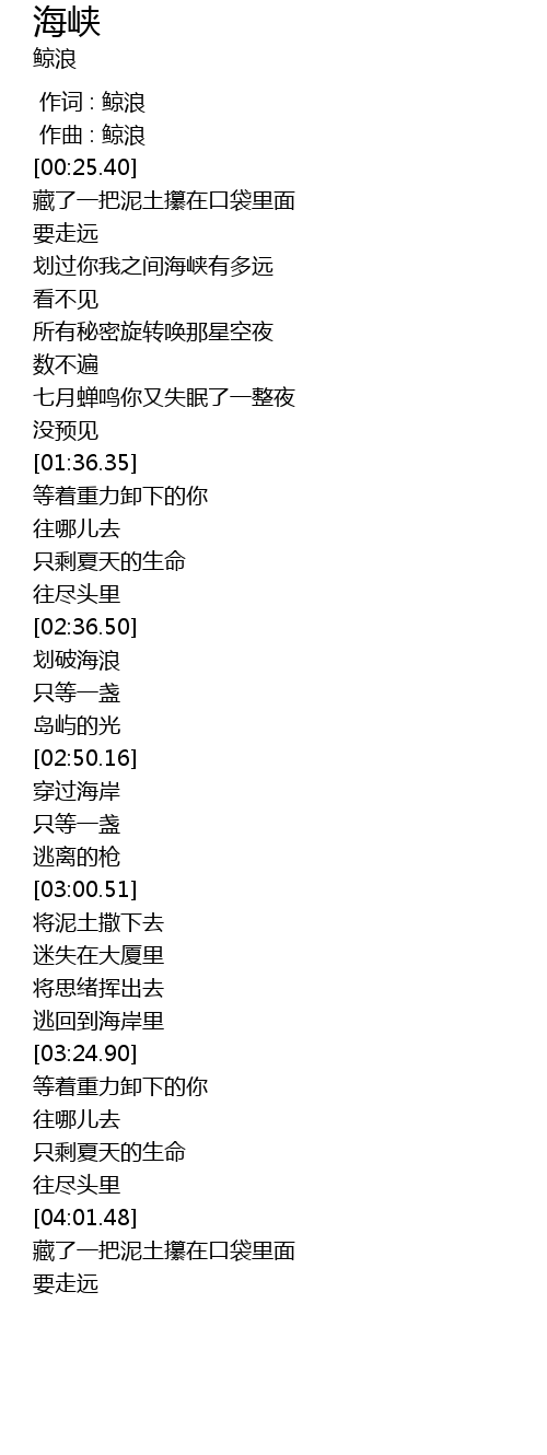 | [00:00.000] | 作词 : 鲸浪 |