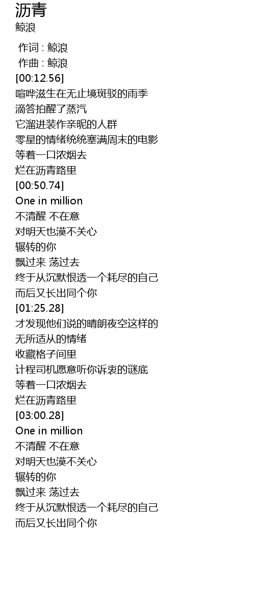 | [02:11.89] | làn zài lì qīng lù lǐ |