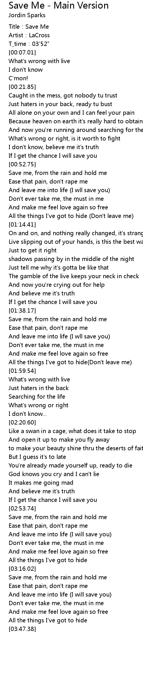 | [00:00.00] | Title:Save Me |