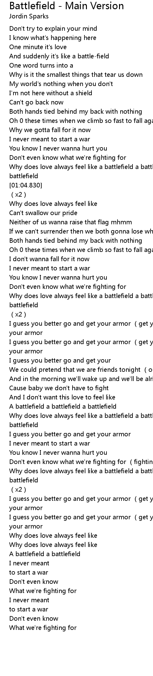 | [02:58.450] | Why does love always feel like a battlefield a battlefield a battlefield |