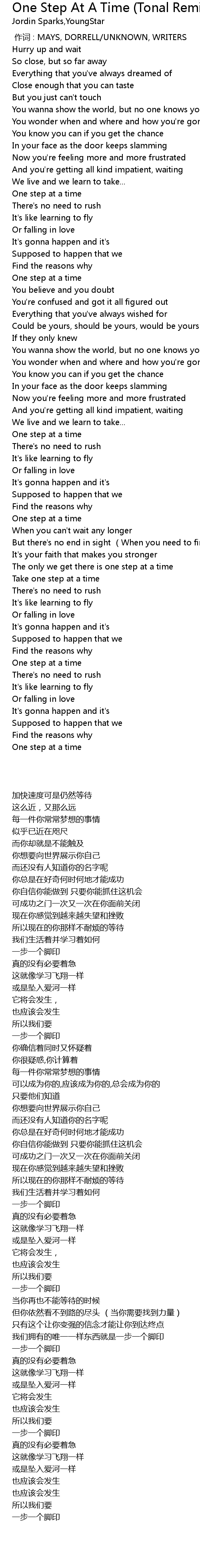 | 歌曲 | One Step At A Time (Tonal Remix) |