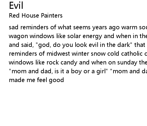 | sad reminders of what seems years ago warm southern sun shines through station wagon windows like solar energy and when in the night your brother turned to me and said, "god, do you look evil in the dark" that made me feel good sad reminders of midwest winter snow cold catholic church heaven in stained glass windows like rock candy and when on sunday their daughter turned at me and said, "mom and dad, is it a boy or a girl" "mom and dad, is it a he or a she" that made me feel good |
