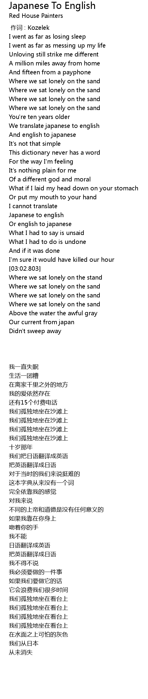 | [00:00.00] | 作词 : Kozelek |