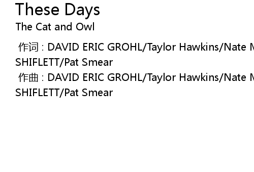| [00:00.000] | zuò qǔ : DAVID ERIC GROHL Taylor Hawkins Nate Mendel CHRISTOPHER A SHIFLETT Pat Smear |