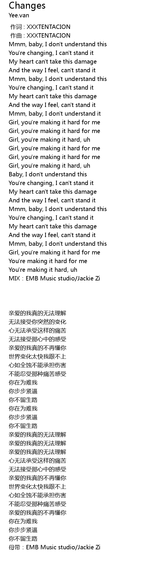 | [00:00.000] | 作词 : XXXTENTACION |