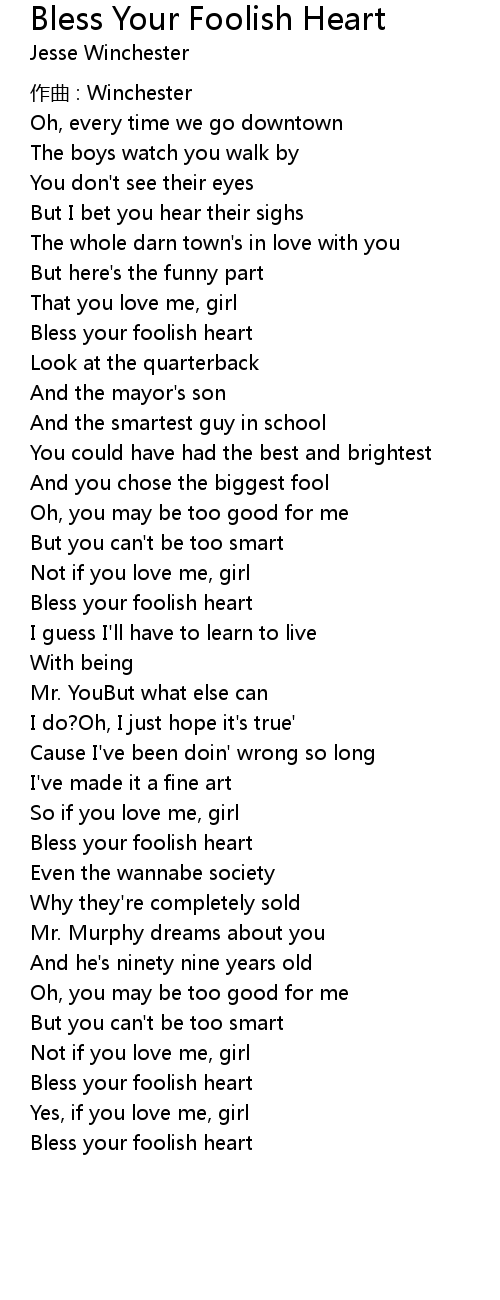 | 歌曲 | Bless Your Foolish Heart |
