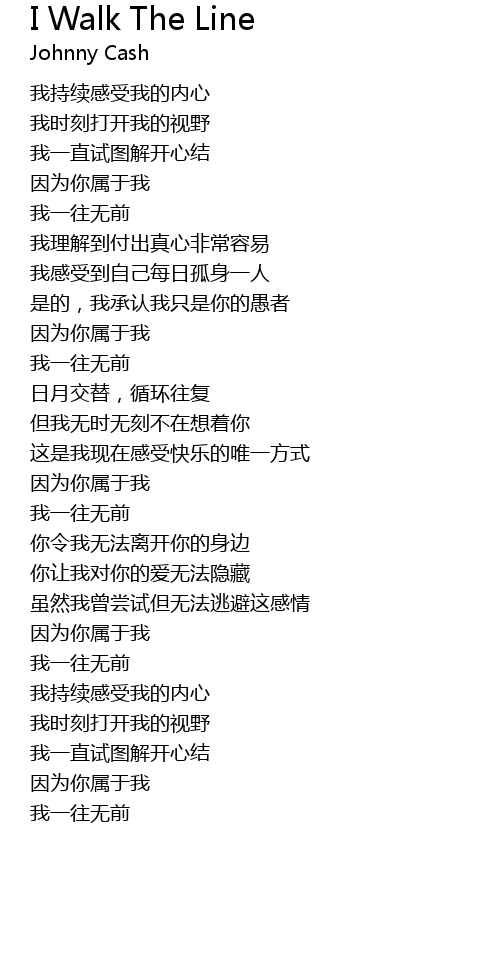 | 歌曲 | I Walk The Line |