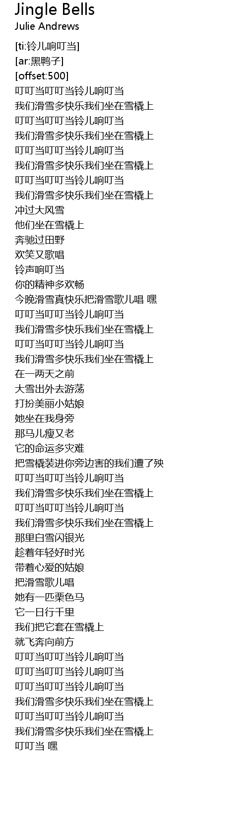 | [00:04.920] | 叮叮当叮叮当铃儿响叮当 |