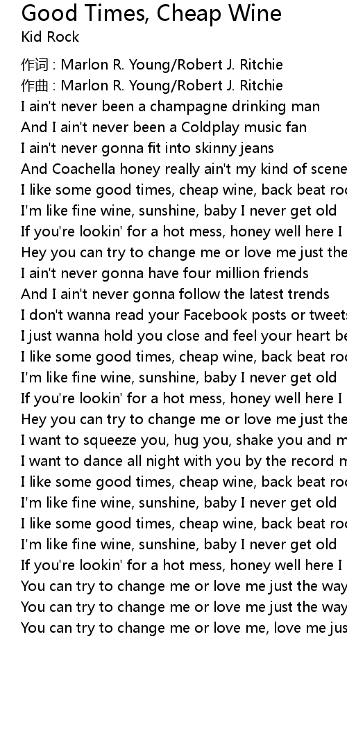 | 歌曲 | Good Times, Cheap Wine |