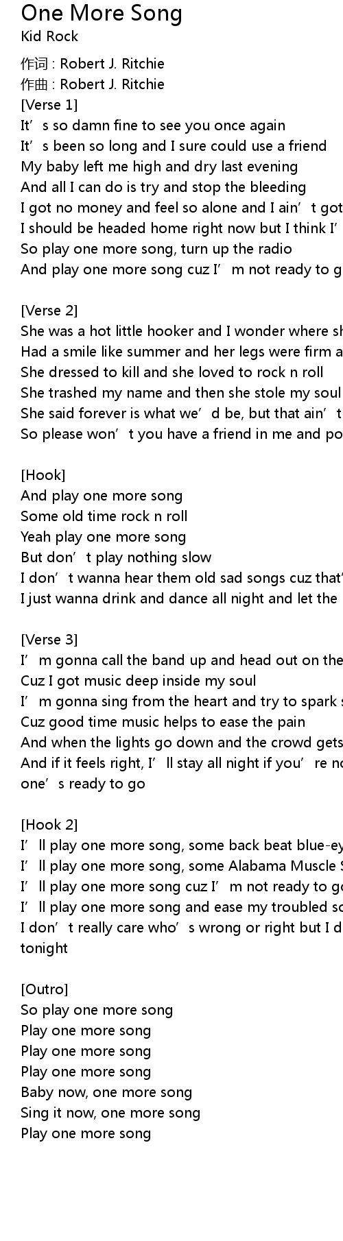 | I’ll play one more song, some back beat blue-eyed soul | |