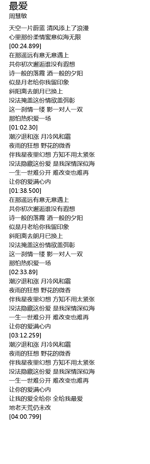 | [02:20.839] | mei fa yan gai zhe fen qing yu gai mi zhang |